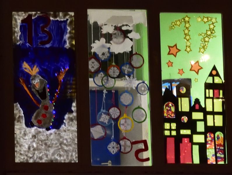 An der Insel-Realschule sind es sogar 9x3 Fenster geworden, die den Altstädter Kirchenweg in vorweihnachtliche Stimmung versetzen.
