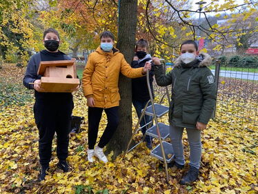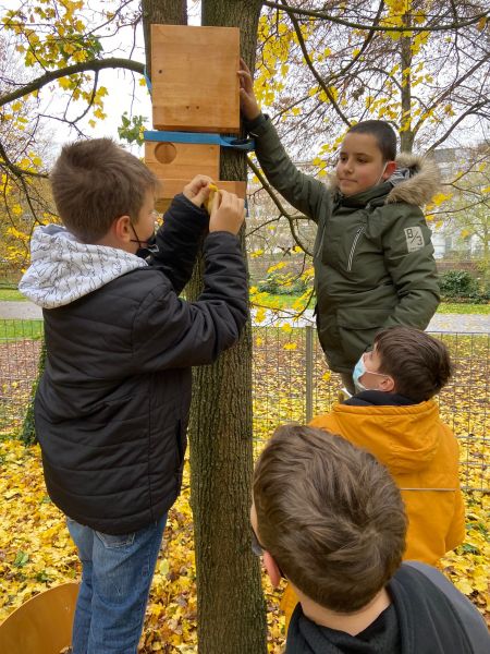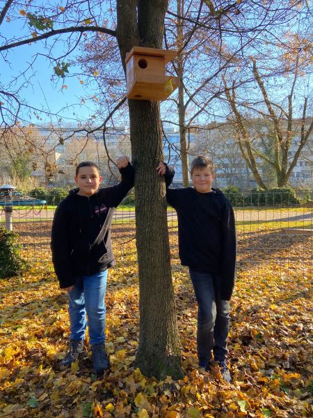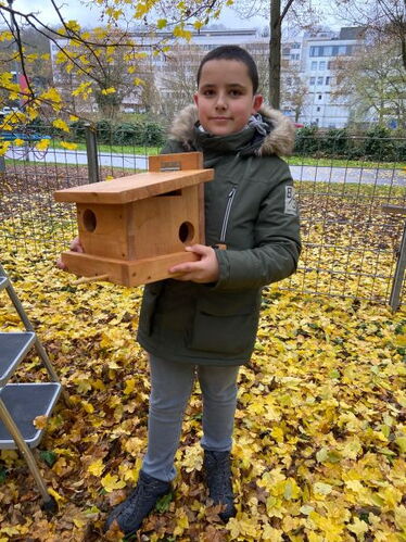 Dank Jamie, einem Schüler aus der Klasse 6b, haben Eichhörnchen, Meise, Amsel und Co. nämlich ein Futterhaus, in dem sie Leckereien finden, die ihnen den Winter kulinarisch versüßen.